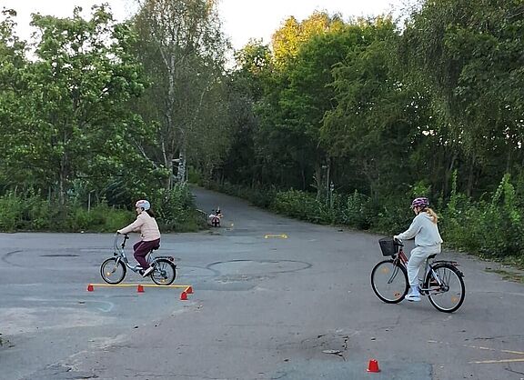 In einem Radfahrkurs lernt man sicheres Anfahren genauso wie sicheres Bremsen in jeder Situation. Und auch Kurvenfahren und Langsamfahren stehen auf dem Programm, so dass Engstellen später problemlos gemeistert werden.